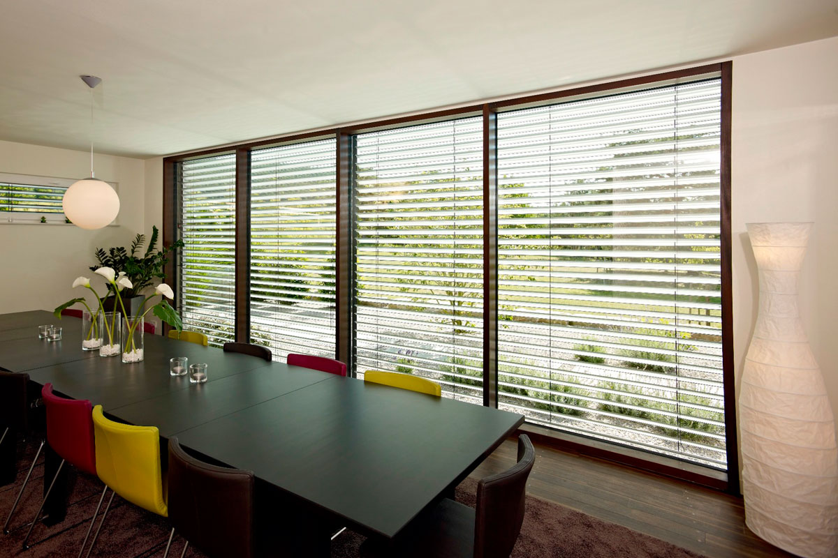 Ein Raffstore, auch als Außenjalousie bezeichnet, ermöglicht Ihnen die Steuerung des Sonnenlichteinfalls nach Ihren Wünschen. Mit seinem Individuell einstellbaren Lamellenwinkel bieten er außerdem Schutz vor Blicken.