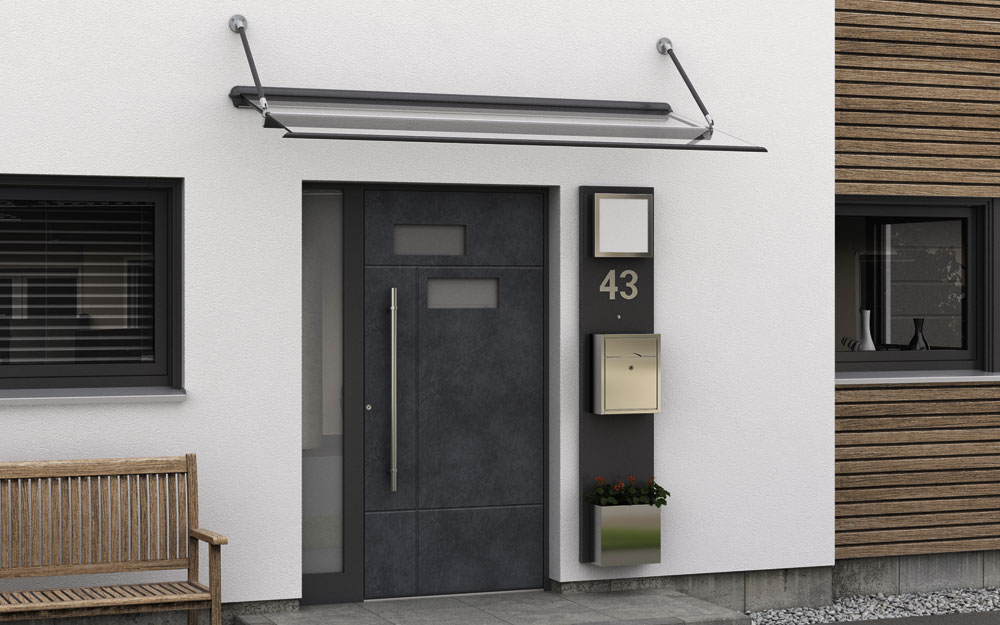 Mit verschiedenen Profilsystemen können zahlreiche Modelle und Größen an Haustürvordächern gefertigt werden. Nicht nur Qualität und Zweckmäßigkeit zeichnen unsere Dächer aus, sondern auch elegante Linien und ein zeitloser Stil.